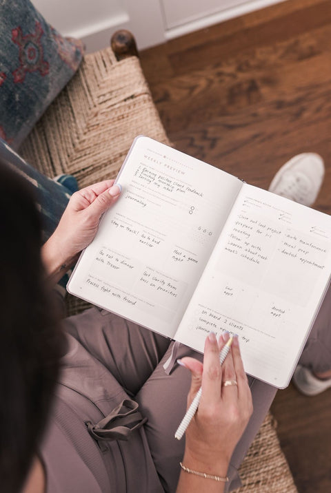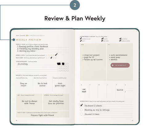 In short, we’ve taken the features you’ve come to grow and love about the planner and added a wellness flair. You will now be able to track your sleep, self-care, stress levels, water intake, movement, and nutrition each day, along with setting your Daily Big 3, managing your tasks list, and setting your schedule. We also have incorporated daily gratitude. The Weekly Preview has been adjusted to take into account how you feel about your progress on your Weekly Big 3 and we make sure to help prompt you on how you plan to manage your stress and joy levels in the upcoming week. Plus, we now have a Self-Care Planner at the beginning of the planner, along with a Heart Check to check in with what motivates and excites you, plus several other new features.