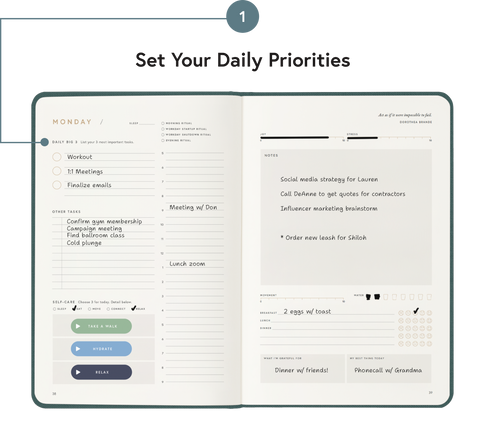 Perfect! By setting your Quarterly Big 3, Weekly Big 3, and Daily Big 3, you can get there a day at a time with the Wellness Planner—all while paying daily attention to your holistic well being.