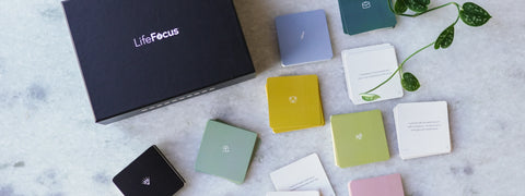 Each LifeFocus Kit comes with a set of 11 prompt card decks and an instruction guide to walk you through the process. It’s like having a life plan facilitator in a box.