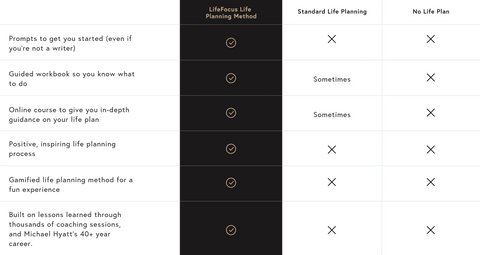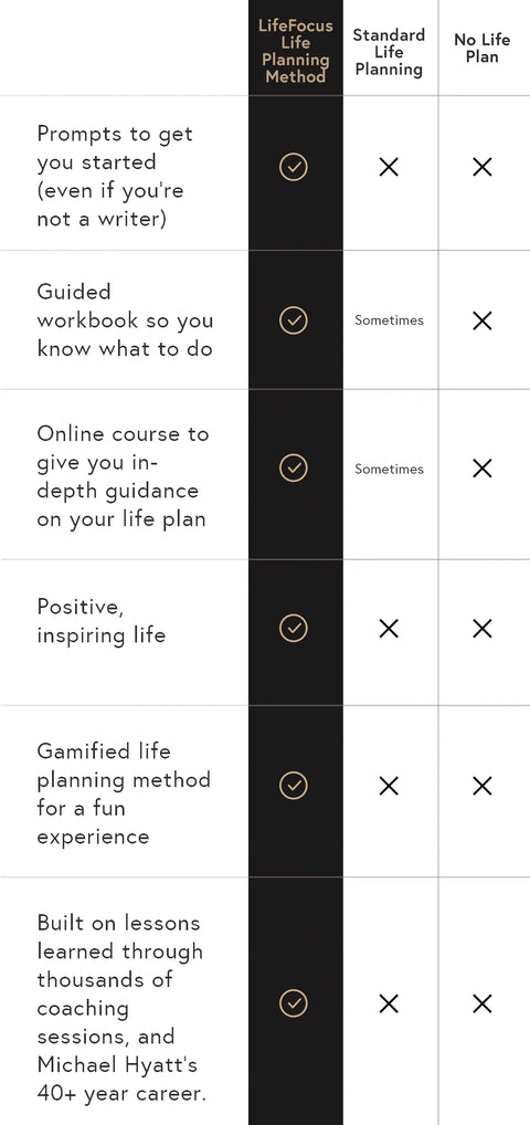 - Guided Workbook: No guessing needed. With the LifeFocus Guided Workbook, you’ll have what you need to create your life plan with ease.