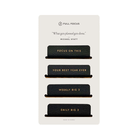 Sold in packs of four, you’ll have everything you need to mark your Daily Page, Weekly Preview, Annual Goals, and an additional focus area of your choice, so you can easily find what you’re looking for in a pinch.